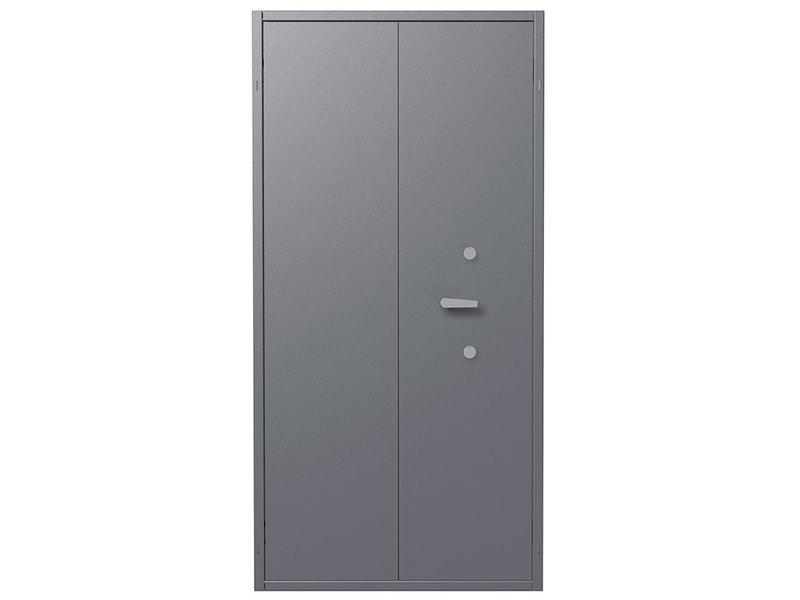 - Комплектуются двумя ключевыми сувальдными замками класс 2 ГОСТ 5089-2011 (по 2 ключа от каждого замка в комплекте) с опечатывающими устройствами. Поворотная ручка для удобства открывания и закрывания. Левая створка двери оборудована двумя подпружиненными самозапирающимися защелками (вверх и вниз) с приводом от ручки находящейся на внутренней стороне створки двери